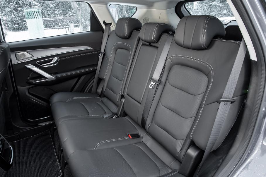 Последним стал X90 Plus, самый вместительный и самый крупный кроссовер с претензией на практически внедорожник. В длину он чуть-чуть не дотягивает до 4,9 метров и в салоне это ощущается особенно — четыре взрослых человека могут разместиться там с комфортом, мы проехали таким составом последний перегон почти в 200 километров до Санкт-Петербурга, и места было достаточно и для ног, и для того, чтобы все, кроме водителя, сидели с ноутбуками и не толкали друг друга локтями. Багажник легко вместил весь наш багаж и огромные пуховики, мест для хранения мелочей предостаточно.