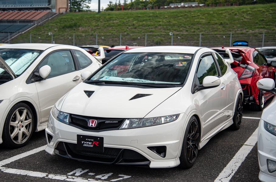 Слет хондоводов внешне совсем не похож на знаменитый GTI-фестиваль на озере Вёртерзее в Австрии, но по смыслу имеет с ним много общего. На автодроме собрали около 400 машин в модификациях Type-R. Как видите, подавляющее большинство в одном цвете. Ведь «чемпионский белый» — фамильный колер для линейки Type-R. Да и в целом, выбор расцветок обычно был сильно ограничен по сравнению с обычными Хондами.