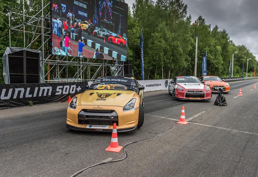 Самые быстрые автомобили Unlim 500+31 мая на Дмитровском автополигоне прошел фестиваль Unlim 500+ – заезды суперкаров на дистанцию в один километр. Всего в соревнованиях приняли участие более 60 машин (и их хозяев), включая как полностью серийные, так и основательно доработанные автомобили. Быстрейшим стал 1800-сильный Nissan GT-R, а специальный приз за максимальную скорость (349 км/ч) достался еще одному GT-R.