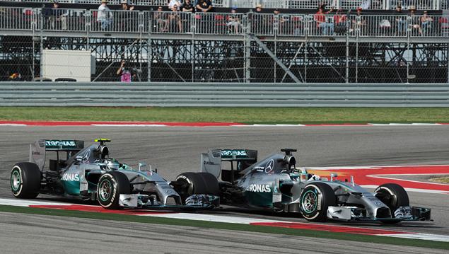 Делить победный кубок в Штатах вновь предстояло только двоим. Еще на свободных заездах преимущество "серебряных" над командами других цветов составляло целую секунду. В квалификации, а затем и в гонке, Росберг и Хэмилтон выступали в собственной лиге.