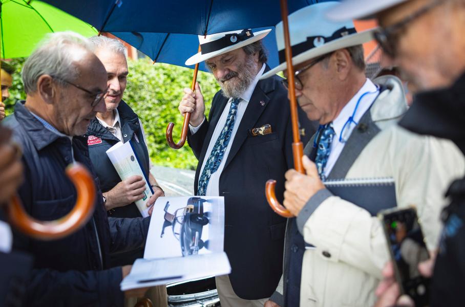 Состав жюри весьма пёстрый: в него входят люди из «винтажного» автобизнеса, историки, авторы книг, опытные коллекционеры, дизайнеры... В этом году в судейскую коллегию входил даже мультипликатор Джей Уорд — один из авторов легендарного мультфильма «Тачки» студии Pixar (и владелец классического Porsche 911). Если увидите на фотографиях людей с блокнотами, в синих пиджаках и белых шляпах — знайте, что это они, судьи.