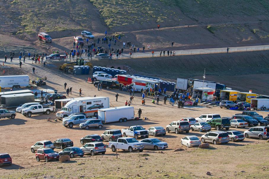 Тренировочные заезды прошли за два дня до гонки. Отведенное время — с половины шестого до половины девятого утра. Команде Volkswagen досталась верхняя треть трассы — до самой гонки прототип ни разу не проезжал больше восьми километров. Площадка Devil’s Playground заменяет одновременно и паддок, и стоянку. «Игровой площадкой дьявола» это место прозвали из-за того, что во время грозы молнии будто скачут здесь с камня на камень. Перед рассветом температура около нуля градусов, высота — 3895 м. Фирменные моторхоумы соседствуют с прокатными грузовиками U-Haul, прототипы стоят на клеенке или чиркают спойлерами о колдобины грунтовой площадки. Желающим позволяют подышать кислородом из баллона, рядом дежурит скорая — воздух здесь так разрежен, что в глазах темнеет от любого резкого движения.