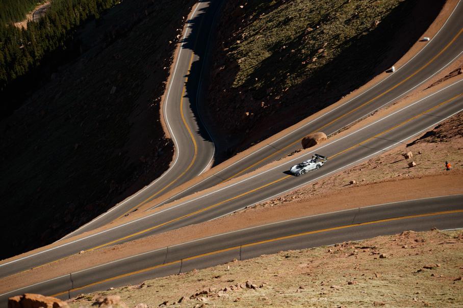 На своем протяжении трасса поднимается на 1440 м, а стартует на высоте 2862 м. Разреженный воздух создает дефицит прижимной силы — в среднем она на 35% ниже, чем на уровне моря. Проблему решают установкой огромных антикрыльев — по ним легко узнать машины, подготовленные для Пайкс-Пика. А вот вторая особенность низкого атмосферного давления вновь играет на руку электромобилям. Относительно уровня моря двигатель внутреннего сгорания теряет на высоте 2,8 км 29% мощности, а на высоте финиша в 4,3 км — все 43%. И только электромоторам высота нипочем.