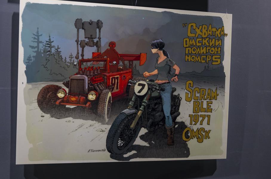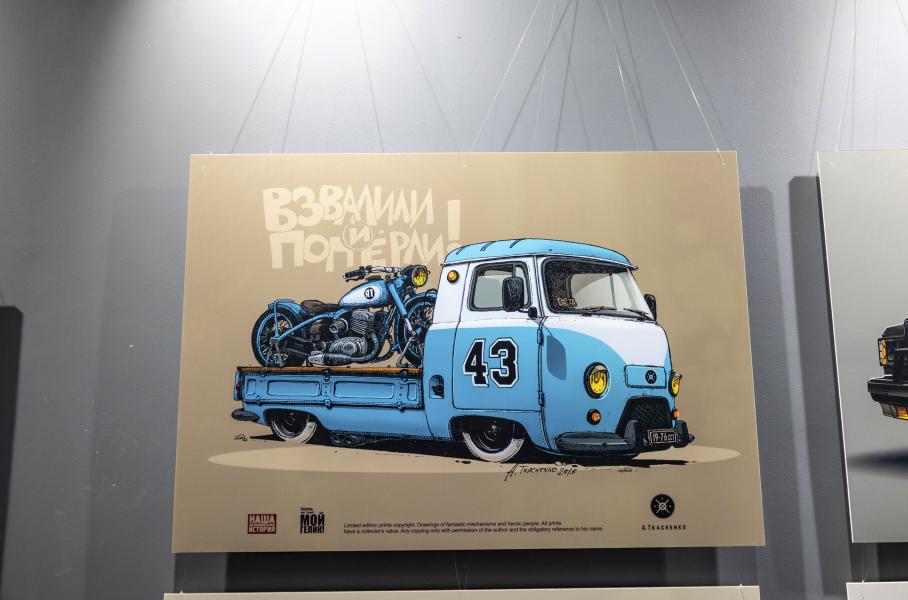 Те самые картины, которые мы называем «теплый ламповый дизельпанк»В Москве на ВДНХ открылась выставка знаменитого промышленного дизайнера и художника Андрея Ткаченко. Его фантастическим работам о советской кастом-культуре в гипотетической параллельной вселенной компанию составили настоящие автомобили. Правда, на улицах вы их тоже не увидите. И это уже отличный повод посетить Музей Гаража особого назначения.