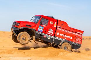 Оказалось, что дорога не позволяла Сергею Вязовичу обогнать Каргинова. В результате Вязович рискнул, махнул через насыпь и в полном смысле слова «на бреющем полете» обогнал КАМАЗ. Это была победа МАЗ Спорт-авто и в общем зачете, и в категории грузовиков! Экипаж Сергей Вязович/Павел Гаранин/Александр Швед преодолели дистанцию в 823 километра за 10 часов 41 минуту 50 секунд.