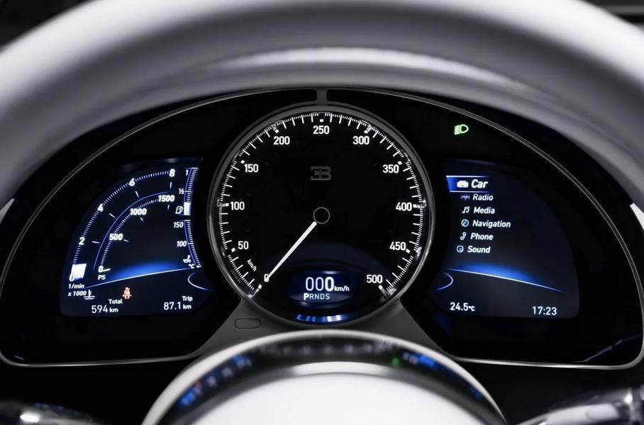 Беспрецедентная ситуация — продажа «живого» Bugatti Chiron в России. Обычно такие машины привозят под клиента, а в свободной продаже их не бывает. Гиперкар 2021 года выпуска с 595 километрами на одометре оценили в 390 миллионов рублей. Никакой цифровизации: интерьер максимально аналоговый, а экран положен только бортовому компьютеру. Спидометр размечен до 500 км/ч, что недалеко от истины, ведь за спинками кресел 8,0-литровый шестнадцатицилиндровый 1500-сильный двигатель с четырьмя турбинами. В России есть и другие Chiron: несколько машин на московском учёте, одна — на чеченском.