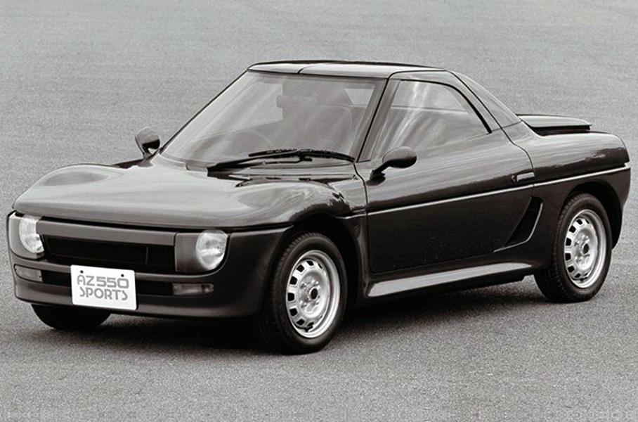Во время трансформации из RS/1 в AZ-1 концепция машины несколько преобразилась: несущую структуру кузова облегчили за счет алюминия, внешние панели изготовили из стеклопластика, а все параметры автомобиля привели к техтребованиям кей-каров, субкомпактных японских машинок льготной налоговой категории. Дабы оценить интерес к маленькому спорткару, в 1989 году на Токийском автосалоне компания Mazda выставила целых три концепт-кара AZ-550 Sports, которые были идентичны технически, но отличались дизайном. Например, у версии Type A были подъемные фары, боковые воздухозаборники на мотив Ferrari Testarossa и двери «крыло чайки», у Type B – пирамидальная крыша и крупные, низко посаженные фары, ну а Type C и вовсе напоминала лемановский прототип в миниатюре.