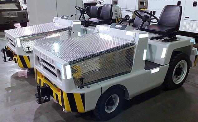 Этот малыш только кажется безобидным. На самом деле, это очень серьезный агрегат, на который возложена серьезная ответственность: довести груз от аэропорта до самолета. И обратно.
