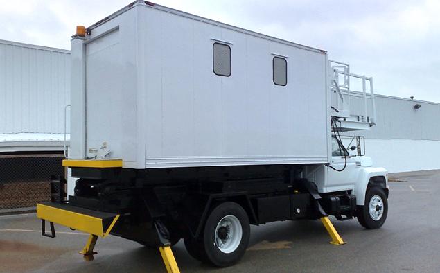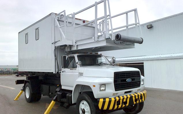 Еще одно транспортное средство, которое необходимо пассажирам, особенно совершающим трансатлантические перелеты. Этот грузовик на базе Ford F800 предназначен для доставки на борт контейнеров из фольги с курицей и рисом или картофелем с мясом. За один раз «Форд» может подвести к самолету и поднять на высоту в несколько метров 2,7 тонны пищи.