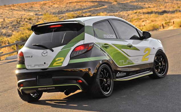 Концепт-кар Turbo2 – не совсем детище компании "Мазда". Идея создать «заряженный» хэтчбек на базе компакта Mazda2 пришла в голову представителям одного из американских дилеров – компании The Autobarn. Для реализации своей задумки предприимчивые «торгаши» решили использовать проверенный временем двигатель от Mazda3 MPS: турбированную «четверку», которая развивает 266 лошадиных сил и 380 Нм максимального крутящего момента.