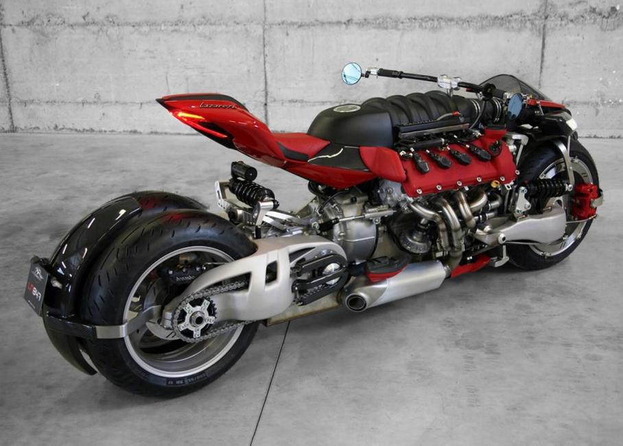 Парадокс: несмотря на то, что на байк Ludovic Lazareth LM847 установлен V-образный восьмицилиндровый двигатель Maserati GranTurismo, стоит мотоцикл более чем в два раза дороже донора силового агрегата. За что же переплачивает клиент? Например, за уникальную раму из карбонового волокна и алюминия, где используются компоненты от супербайков Ducati, а также за невероятное соотношение мощности к массе — 470 «лошадей» на 400 килограммов. Гарантированная максимальная скорость супербайка — 270 километров в час, дальше — на свой страх и риск.