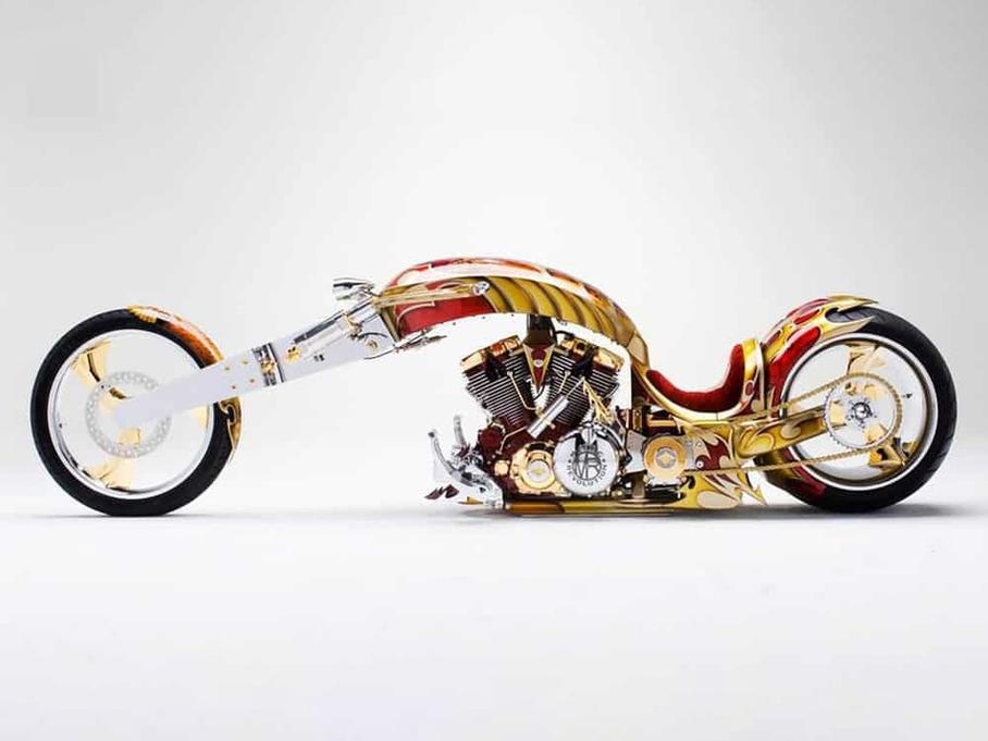 Если же в списках знакомых известного художника нет, можно пойти другим путем — изготовить кастомную раму, покрыть ее 24-каратным золотом, а сиденье мотоцикла обить красным бархатом. Ну и ямаховский мотор объемом 1,7 литра не помешает. Сумасбродный Yamaha BMS был построен именно по такому сценарию, и, хотя насчет его внешнего вида можно долго дискутировать, нынешняя цена у него предельно понятная и «обжалованию не подлежит» — 3 миллиона долларов или 190 миллионов рублей. Как новый Bugatti Chiron с парой-тройкой опций. А ведь начиналось все с полумиллиона долларов…