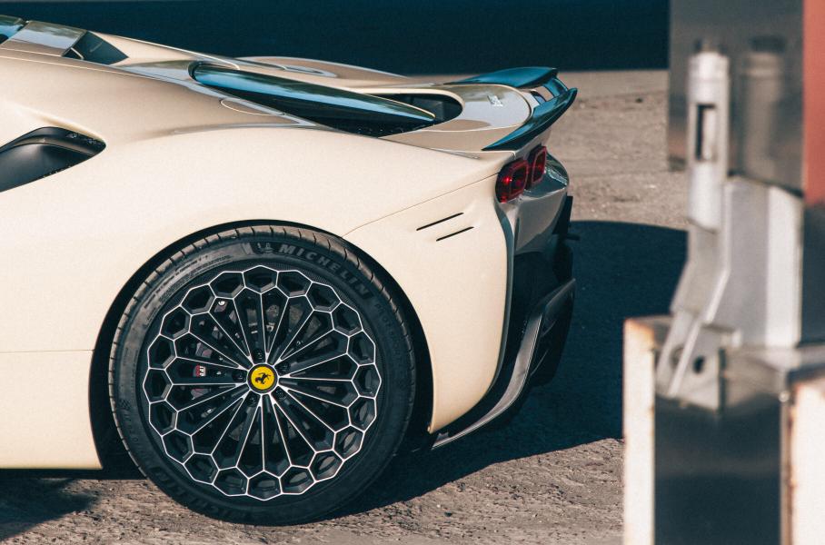 Суперкар Ferrari SF90 Stradale дебютировал в 2019 году и стал первым подзаряжаемым гибридом итальянской марки: в связке с четырёхлитровым турбомотором мощностью 780 л.с. работают три электромотора — один встроен в коробку передач, ещё два приводят передние колёса. Совокупная отдача силовой установки составляет 1000 лошадиных сил!