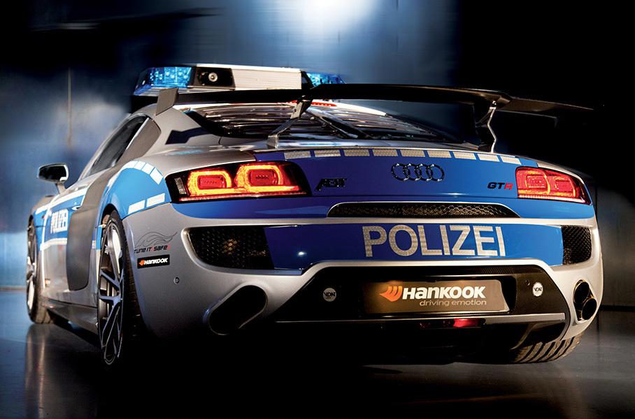 Еще один концепт, подготовленный по программе Tune it! Safe! — ABT R8 GTR. Помимо полицейской ливреи, суперкар несет на себе стандартизированную «люстру» RTK7, а также защитную пленку для ветрового стекла.