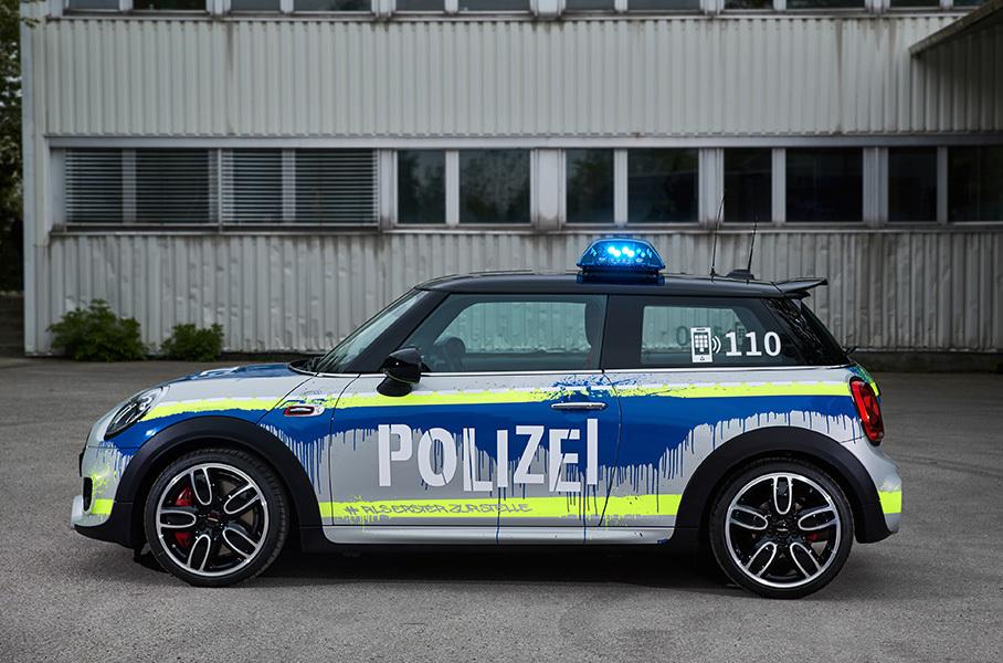 Полицейская ливрея нарочно оформлена с подтеками краски, словно это произведение стрит-артистов – все-таки Mini позиционируется как молодежный бренд.