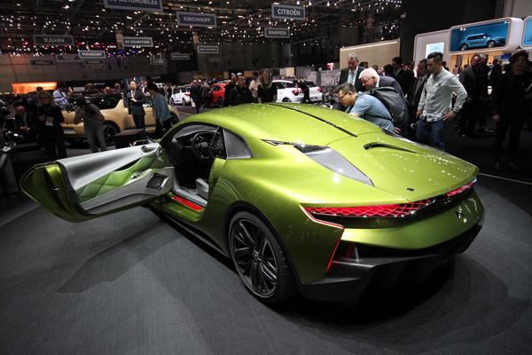 На разработку интерьера потребовалось более 800 часов. Прототип получил цифровую приборную панель, десятидюймовый сенсорный дисплей с необычной подставкой, часы фирмы BRM Chronographes и аудиосистему Focal. Электромотор, развивающий 402 лошадиные силы и 516 Нм, позволяет 1800-килограммовому спорткару разгоняться до «сотни» менее чем за четыре секунды. Запаса батарей должно хватит на 360 километров пути.