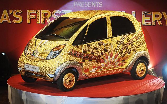 Автомобили, полностью отделанные снаружи золотом, далеки от того, чтобы их можно было назвать образцом стиля, эстетики и элегантности. Но такие извращения хотя бы стоят тех денег, которые уходят на демонстрацию статуса владельца. Например, в гараже султана Брунея есть Rolls-Royce с кузовом из чистого золота: говорят, он катался на нем лишь один раз – во время собственной коронации. Но что, если золотом отделана самая дешевая машина в мире – компакт Tata Nano? Никаких вразумительных доводов для такого решения найти невозможно. Более того, невозможно вообще поверить в ее существование!