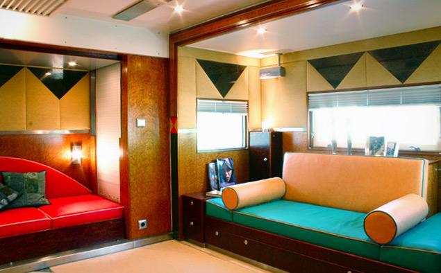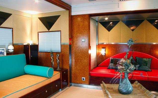 Несмотря на невысокую скорость, оснащению внутреннего пространства Terra Wind позавидуют даже каюты дорогих океанских лайнеров. Внутри жилого модуля есть полноценная кухня, огромная кровать, кожаные кресла и диваны, отделка дорогими сортами дерева, джакузи и несколько больших жидкокристаллических дисплеев. С таким оснащением можно заглушить моторы и дрейфовать сколько душе угодно.