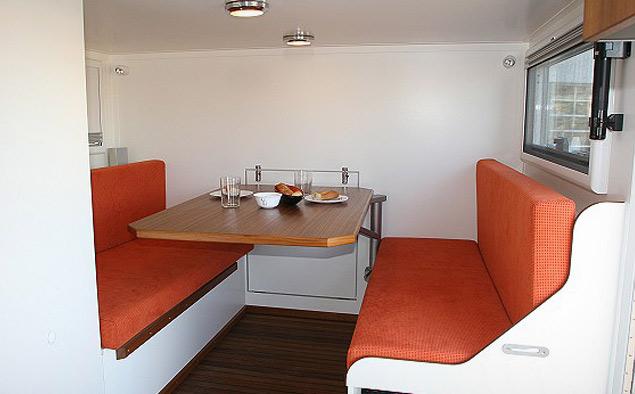 Кузов жилого модуля выполнен из дерева, стали и углеволокна. Внутреннее помещение отделывается кленовыми панелями. Спальное отделение EarthRoamer XV-LT, располагающееся прямо над четырехместной кабиной, имеет два обзорных окна с противомоскитными сетками. Сразу за кабиной расположено обеденное пространство, которое может трансформироваться в два дополнительных спальных места. Дизельная топливная система питает не только силовую установку – с ее помощью подогревается даже вода в душе и керамическая плита для приготовления пищи.