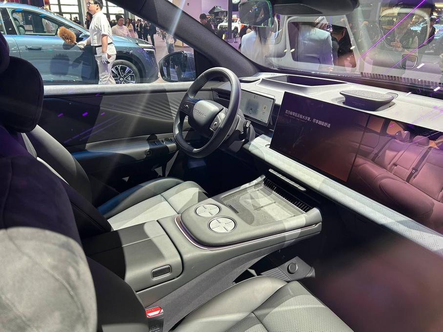 Все поверхности в салоне отделаны мягкими материалами, а пол во втором и третьем рядах полностью ровный. Концепт получил чипсет Snapdragon 8397+, активную гидропневматическую подвеску с функцией поворота задних колёс и возможностью разворота на месте.