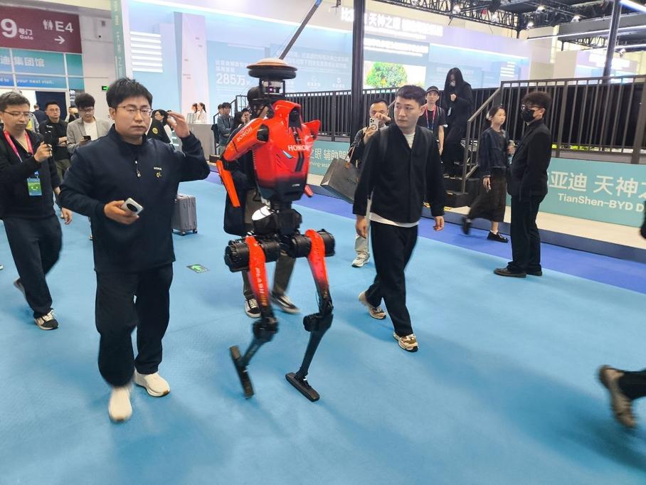 Вот такие роботы свободно разгуливают по павильонам Пекинского автосалона.