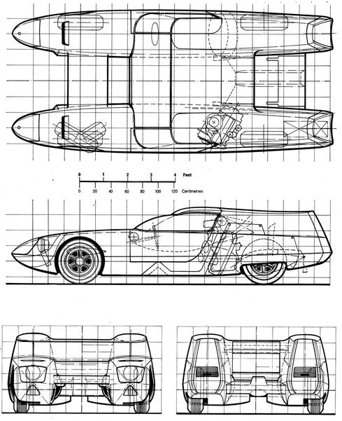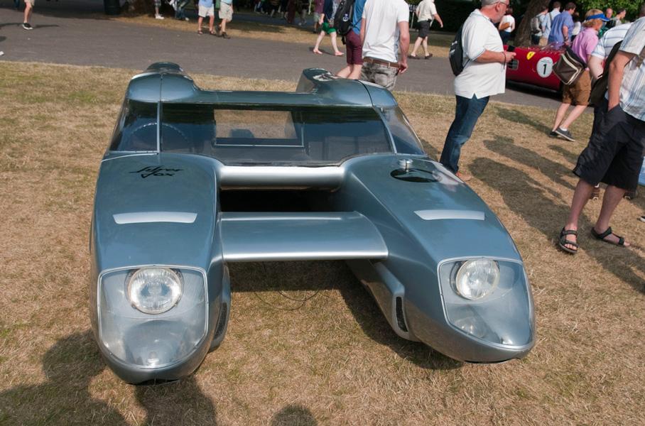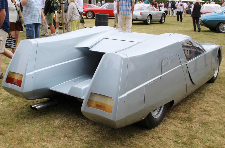 И к автосалону в Турине 1967 года был готов автомобиль, получивший имя Silver Fox. На фоне всех предыдущих проектов OSI, Silver Fox выглядела настоящим космолетом… Да и на фоне других машин выставки тоже. «Серебряная лисица» имела два четко обозначенных понтона, соединенных между собой трубчатым каркасом и полумонококом – почти как самостоятельные автомобили Таруффи. На первый взгляд, такая конструкция была нерациональной – ведь кузов нужно было ужесточать в центральной части, дабы тот не просел под воздействием воздушных масс. Еще и пассажир с водителем, в случае с гражданской версией, сидели на огромном расстоянии друг от друга.