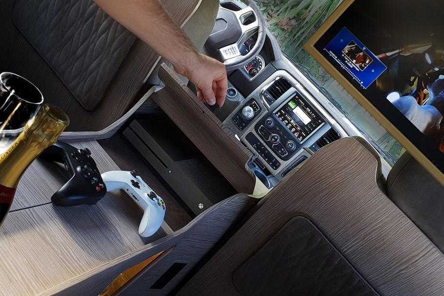Вишенка на этом торте роскоши – два откидных 17-дюймовых LCD-монитора, на которых можно, например, рубиться в Forza Horizon. За качественный звук отвечает премиальная аудиосистема с 10 динамиками и сабвуфером. Суммарная мощность установки составляет 1,2 кВт.