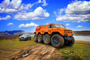 Очень скоро мы доберемся и до целых жилых вездеходов-амфибий, не уступающих в размерах полноценному дачному дому, а пока просто сделаем шаг к следующему уровню по размеру, проходимости и, конечно, цене.