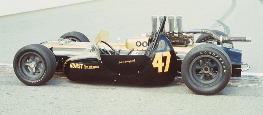 В случае с Hurst Floor Shift Special картина не столь однозначная – ведь двигатель авто расположен как раз-таки по центру, а уже сбоку от него находится «люлька» пилота. При создании этой гоночной машины Генри «Смоки» Юник черпал вдохновение в образе самолета Blohm & Voss BV 141 времен Второй мировой войны и, как показала практика, «источник вдохновения» был избран верно – машина показала себя быстрой и отлично сбалансированной в ходе практических заездов перед Инди-500 1964 года.