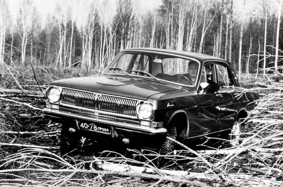 Заводская внедорожная Волга появилась в середине 70-х, когда кузов 24-ой поженили с агрегатной базой УАЗ-469 (за исключением двигателя, который остался стандартным). Как и М72, машина была лишена рамы, а потому имела существенно ужесточенный кузов.