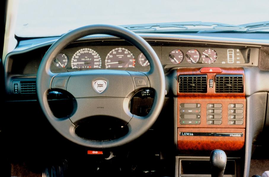 В 1997 году Diablo обзавёлся водительской подушкой безопасности. Руль при этом установили оригинальный, с подсечённой нижней частью — а вот сам эйрбег целиком взят у итальянского седана Гольф-класса Lancia Dedra. Сами убедитесь: ступицы руля абсолютно идентичны — только на Lamborghini вместо логотипа Lancia в треугольном углублении установлена эмблема с разъярённым быком!
