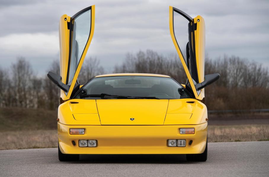 Lamborghini Diablo в исходном варианте с убирающимися фарами (жёлтый) и рестайлинговая версия со стационарной оптикой