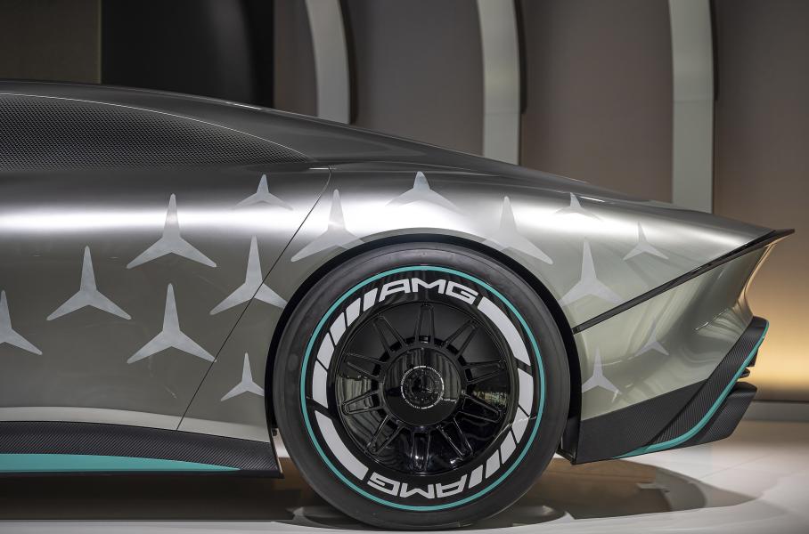 Vision AMG — это пятидверный лифтбек с «бесшовным» кузовом с минимумом стыков и соединительных линий. В профиль он почти идентичен представленному в начале года дальнобойному концепту Vision EQXX, однако «заряженный» шоу-кар отличился еще более проработанной аэродинамикой с выдвижным спойлером в задней части.