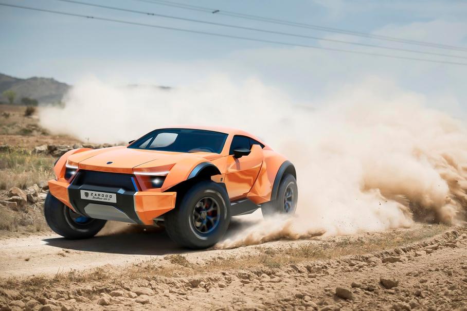 Первоначально дубайская компания Zarooq Motors задумывала свой боевой багги ралли-рейдовым инструментом и лишь во вторую очередь планировала дорожную модификацию. Но со временем концепция изменилась. К моменту показа товарного варианта в 2017 году бренд отказался от спортивных амбиций и переделал SandRacer в дорогущего мелкосерийного франкенштейна.