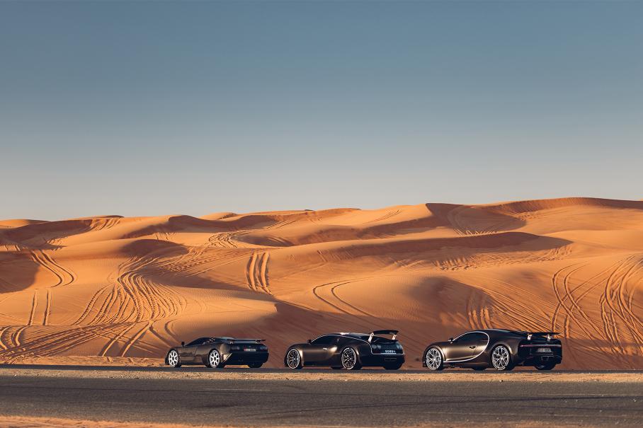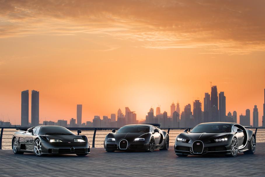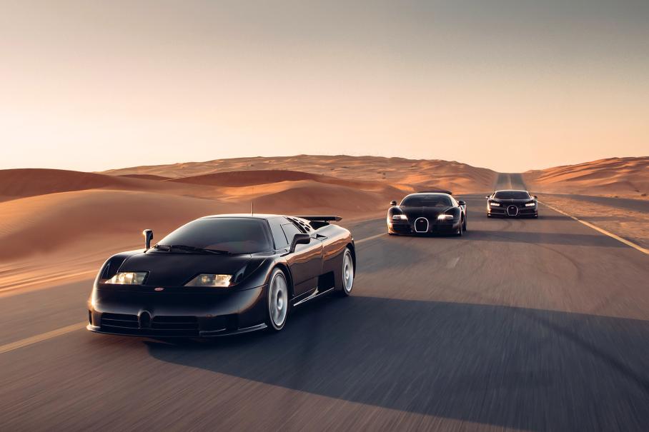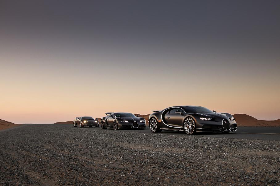 «Трилогия современных Bugatti»: фотосессия, в которой объединились модели EB110, Veyron SuperSport и Chiron