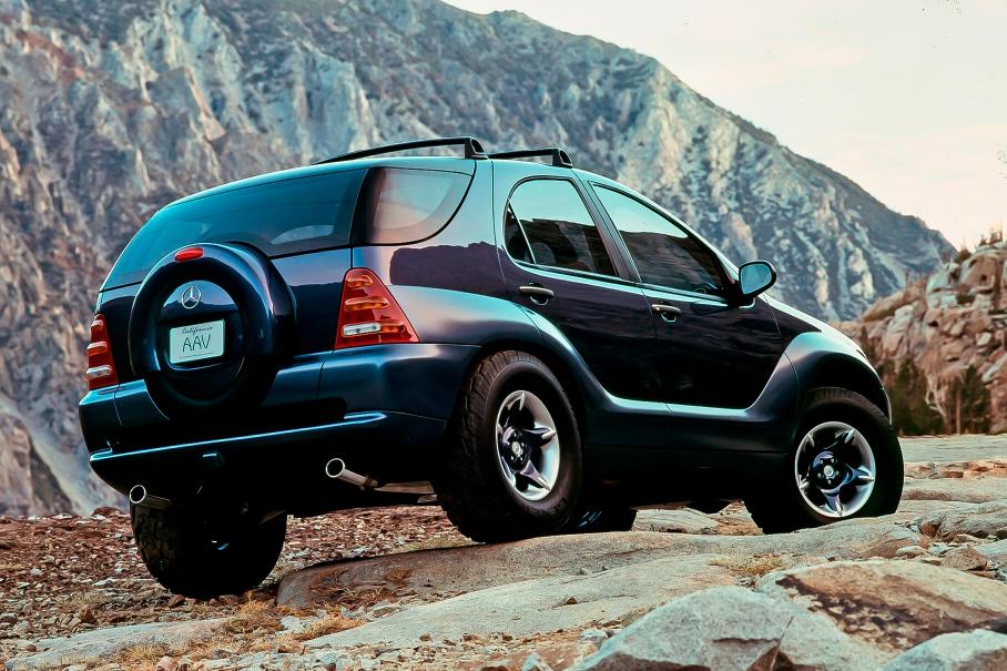 Mercedes-Benz AAV Concept 1996 года — так выглядел выставочный прообраз будущего кроссовера ML. Обратите внимание на мерседесовские звезды даже на протекторе