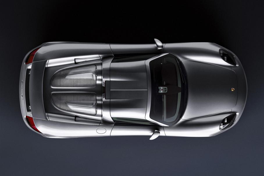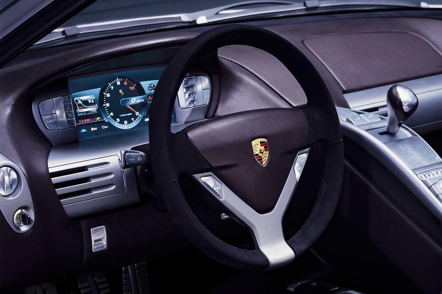 Вдохновленная Ле-Маном концепт-версия Carrera GT построена вокруг 5,5-литрового V10 от мертворожденного прототипа и имеет широкий спектр заимствований из мира спорта. В их числе углепластиковый монокок, подвеска типа push-rod и крепление колес центральной гайкой. Плюс кузов в лучших традициях дизайна Porsche. Зрители от такого буквально сошли с ума, и компания дала дорожной мелкосерийной модификации зеленый свет.