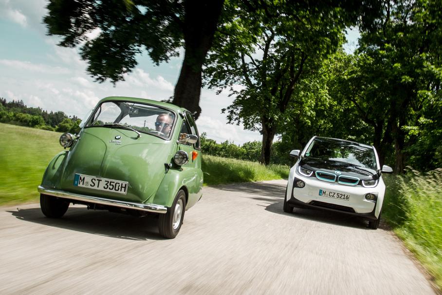 Вечно молодой классический Golf GTI и его «праправнук» — хрестоматийный пример эволюции. А что пытаются донести две маленькие BMW? Родства между ними нет совсем. Идеологические и конструктивные различия поистине глобальны. Но формат плюс-минус одинаковый с поправкой на рост размеров как одну из отраслевых тенденций. И, наконец, самое главное: холодильник с моторчиком по имени Isetta — не совсем BMW. Но именно это микроскопическое существо с приколоченной к двери рулевой колонкой помогло компании избежать банкротства.