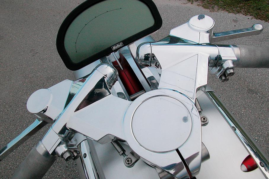 Вы тоже почувствовали, как от одной мысли о снятии байка с подножки по спине побежали мурашки? А каково нечаянно положить Tomahawk на бок? Это вам не дорожная «шестисотка» Yamaha FZ6, здесь подъемный кран понадобится! Создатели монстра учли «тяжелые моменты» и для перманентной устойчивости наделили его четырьмя 20-дюймовыми колесами с шинами размерностью 120/60 спереди и 150/50 сзади. Интересная особенность мегамотоцикла — независимая подвеска для каждого переднего колеса с разнесенными функциями рулевого управления и демпфирования.