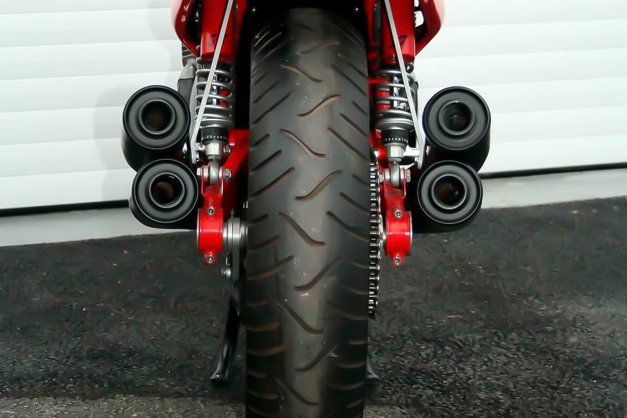 Кей задумывал модель спортивного толка, но создавал ее не по общепринятым на тот момент канонам, а согласно собственным представлениям о прекрасном. Байк не планировался в качестве эксклюзивного соперника передовых Ducati 916 или Honda CBR900RR Fireblade — напротив, он пропитан нарочитой старомодностью. Вместо диагональной рамы как у спортивных «японцев» или ажурной «птичьей клетки», характерной для очень многих образцов итальянской инженерной школы, простой дуплексный «скелет». Его трубы обнимают 900-кубовую 16-клапанную «четверку» воздушно-масляного охлаждения умеренной мощностью 105 л.с. при 8800 об/мин.