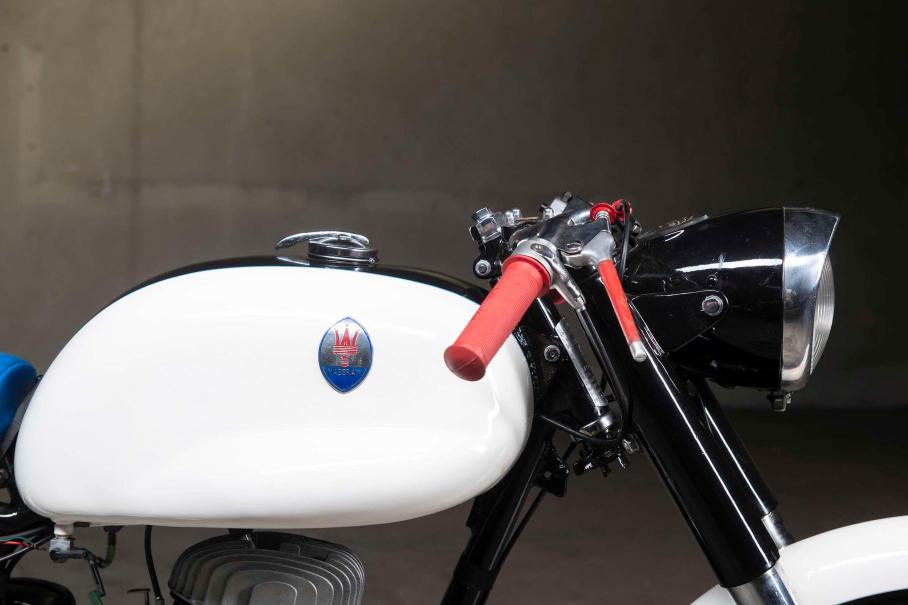 Карло, один из братьев Мазерати, строил одноцилиндровые двигатели для установки на велосипеды еще на заре времен компании. А вот и второй интересный факт — в пятидесятые годы владевшая Maserati семья Орси решила попытать счастья в мотоциклетном сегменте, благо послевоенной Италии требовался дешевый транспорт. Байки со всемирно известной эмблемой не имели отношения к автомобильному крылу. Они появились при участии подразделения по выпуску свечей зажигания и аккумуляторных батарей Fabbrica Candele Accumulatori Maserati S.p.A., которое тоже входило в империю Орси.