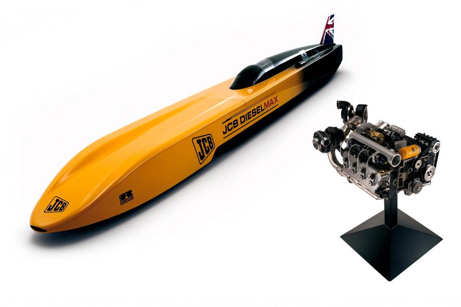 В качестве бонуса у нас будет JCB Dieselmax — стримлайнер, созданный с целью побить наземный рекорд скорости для транспортных средств с дизельным двигателем. Dieselmax был построен британским производителем строительной техники J.C.Bamford Excavators Ltd. Облегчённый кузов из композитных материалов прячет от глаз оригинальную пространственную раму из квадратных стальных профилей, склеенных между собой с помощью панелей из углеволокна. Полноприводный Dieselmax получил два пятилитровых битурбодизеля JCB444, доработанных в компании Ricardo. Каждый из двигателей развивает 761 л.с. и вращает колёса своей оси — передней или задней.