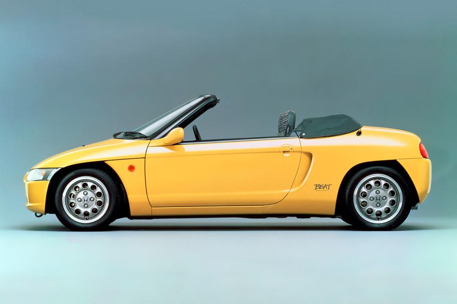 Ещё один японский автомобиль с итальянским дизайном — на сей раз Honda Beat от ателье Pininfarina. Чем не младший брат легендарной NSX, которую называли японской Ferrari? Даже цветовая гамма этого родстера была выбрана так, словно выпускали его не в Сузуке, а в Маранелло! Да и с технической точки зрения всё по канонам: мотор за сиденьями, задний привод — разве что вместо двухрычажных подвесок здесь по кругу стойки McPherson во имя более плотной компоновки.