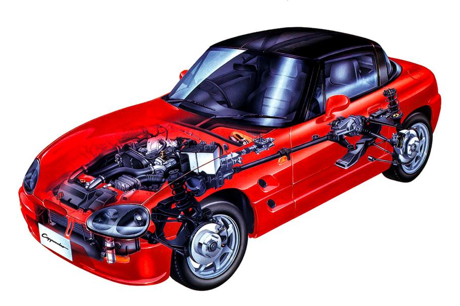 Но главное — сам двигатель. К 1991 году регламент на кей-кары приобрел параметры, которые используются по сей день: максимум 660 кубов и 64 лошадиные силы. Так вот, рядный трехцилиндровый агрегат выдавал ровно столько, причем на чистой «атмосфере», безо всяких турбин — удельная мощность составляла почти 100 сил с литра, то есть больше, чем у NSX!