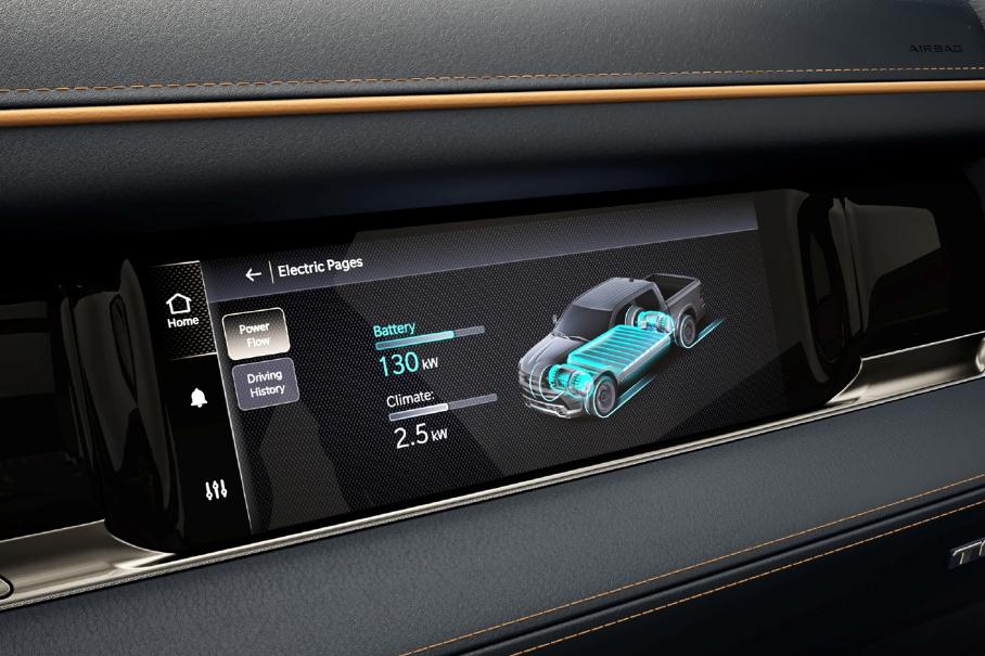 Бонусом расскажем про батарейный Ram 1500 REV. Он не попал в хит-парад журнала из-за своей новизны (выход на рынок ожидается в конце 2024 года), однако достоин пристального внимания. Внешне REV недалеко ушел от обычного «Рэма». Заметные отличия — передняя часть без радиаторной решетки и скобообразные задние фонари.