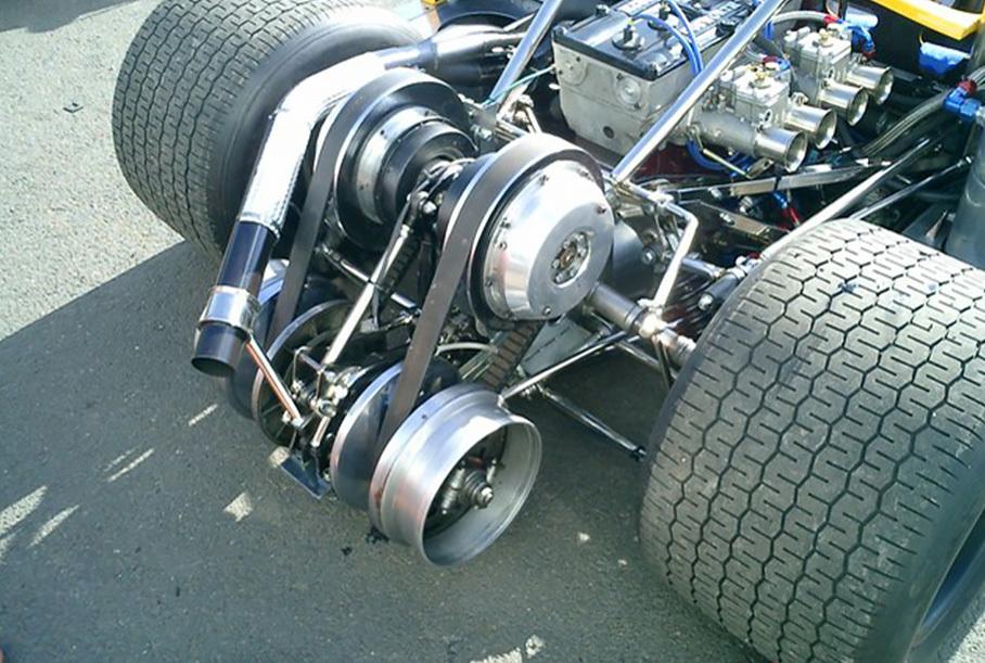 В ранних версиях на шасси Alexis (на фото) и Brabham существовала проблема проскальзывания приводных ремней в дождь