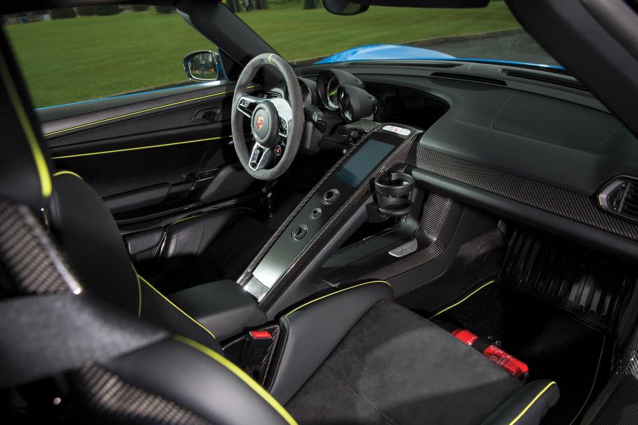 M18.00 безо всяких турбокомпрессоров выдает 608 л.с. при 8700 об/мин. Тяга передается на заднюю ось посредством семиступенчатого преселективного «робота» PDK с двумя сцеплениями. Подзаряжаемая от внешнего источника электрическая часть системы представлена мотором на каждой оси и тяговой аккумуляторной батареей емкостью 6,8 кВт⋅ч. В экологически чистом режиме E-Power «спайдер» проезжает 16–32 километров на скоростях до 150 км/ч и набирает сотню примерно за семь секунд. Желаете сыграть по-взрослому? Тогда к вашим услугам пиковые 887 л.с. и разгон до 100 км/ч за 2,6 секунды.