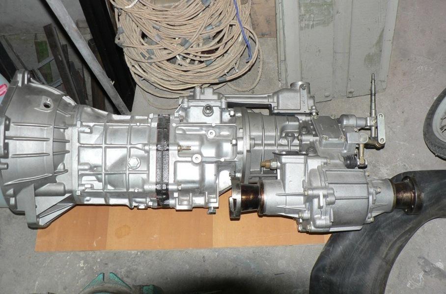В конечном итоге коробку передач использовали японскую, но пристыковали к ней «раздатку» собственной разработки. Коробка Aisin AG5 — универсальный агрегат, используемый на многих внедорожниках японского производства (Suzuki Vitara в их числе). А раздаточная коробка по конструкции напоминала обычную «нивскую», но отличалась в деталях — а главное, крепилась жёстко к коробке передач.