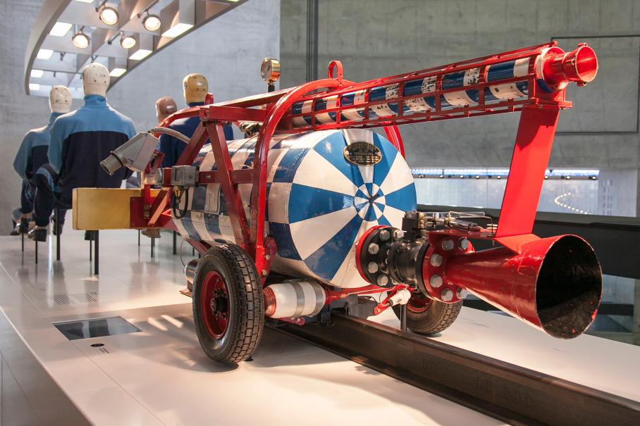 «Катапульта» в музее Mercedes-Benz в Штутгарте: с её помощью автомобили для краш-тестов разгоняли до нужной скорости