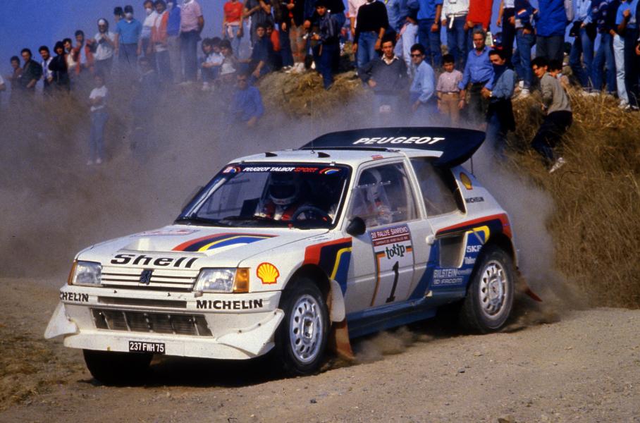 Среднемоторный Peugeot с самого начала создавался ради участия в чемпионате мира по ралли: дорожные машины выпускались лишь из необходимости соответствовать правилам раллийной «группы Б» (они требовали продать 200 машин). По конструкции он был куда радикальнее, чем Renault 5 Turbo.